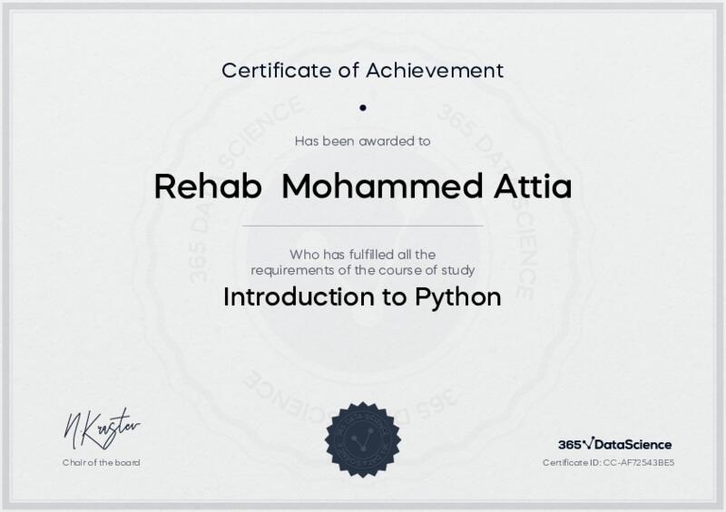 This user has been awarded the Introduction to Python Certificate for successfully completing the course exam. Holding this certificate demonstrates their proficiency on the topic and signifies they are qualified to apply their newly acquired expertise in the fields of data analytics and data science.