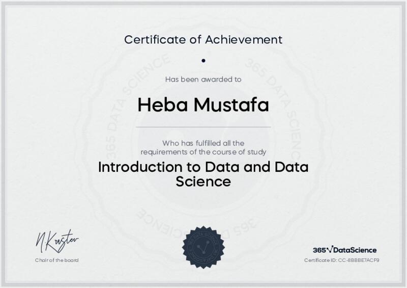 This user has been awarded the Introduction to Data and Data Science Certificate for successfully completing the course exam. Holding this certificate demonstrates their proficiency on the topic and signifies they are qualified to apply their newly acquired expertise in the fields of data analytics and data science.