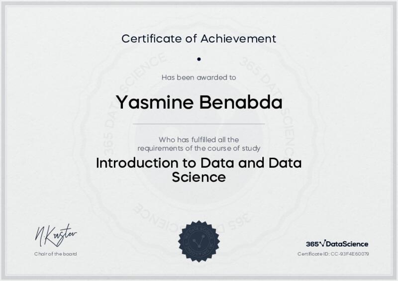 This user has been awarded the Introduction to Data and Data Science Certificate for successfully completing the course exam. Holding this certificate demonstrates their proficiency on the topic and signifies they are qualified to apply their newly acquired expertise in the fields of data analytics and data science.